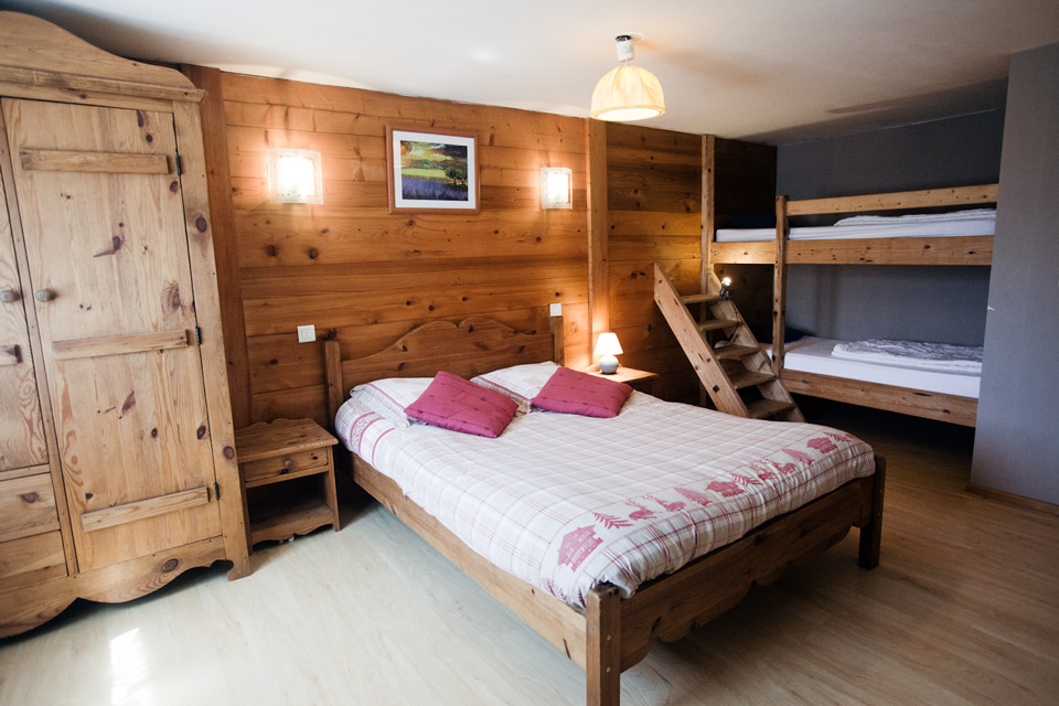 Chambre 2 : 3 lits 1 place transformables en 1 grand lit 2 places + 1 lit 1 place, rangements.